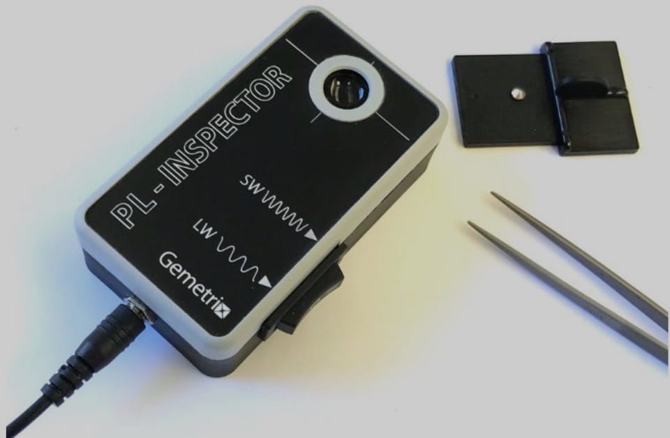 Eine UV-Lampe wird verwendet, um die Fluoreszenz eines Steines zu prüfen. Viele Edelsteine weisen unter UV-Licht eine fluorisierende charakteristische Farbe auf. Die Fluoreszenz kann ein weiteres Identifikationsmerkmal sein und helfen, natürliche Edelsteine von synthetischen oder behandelten Steinen zu unterscheiden.